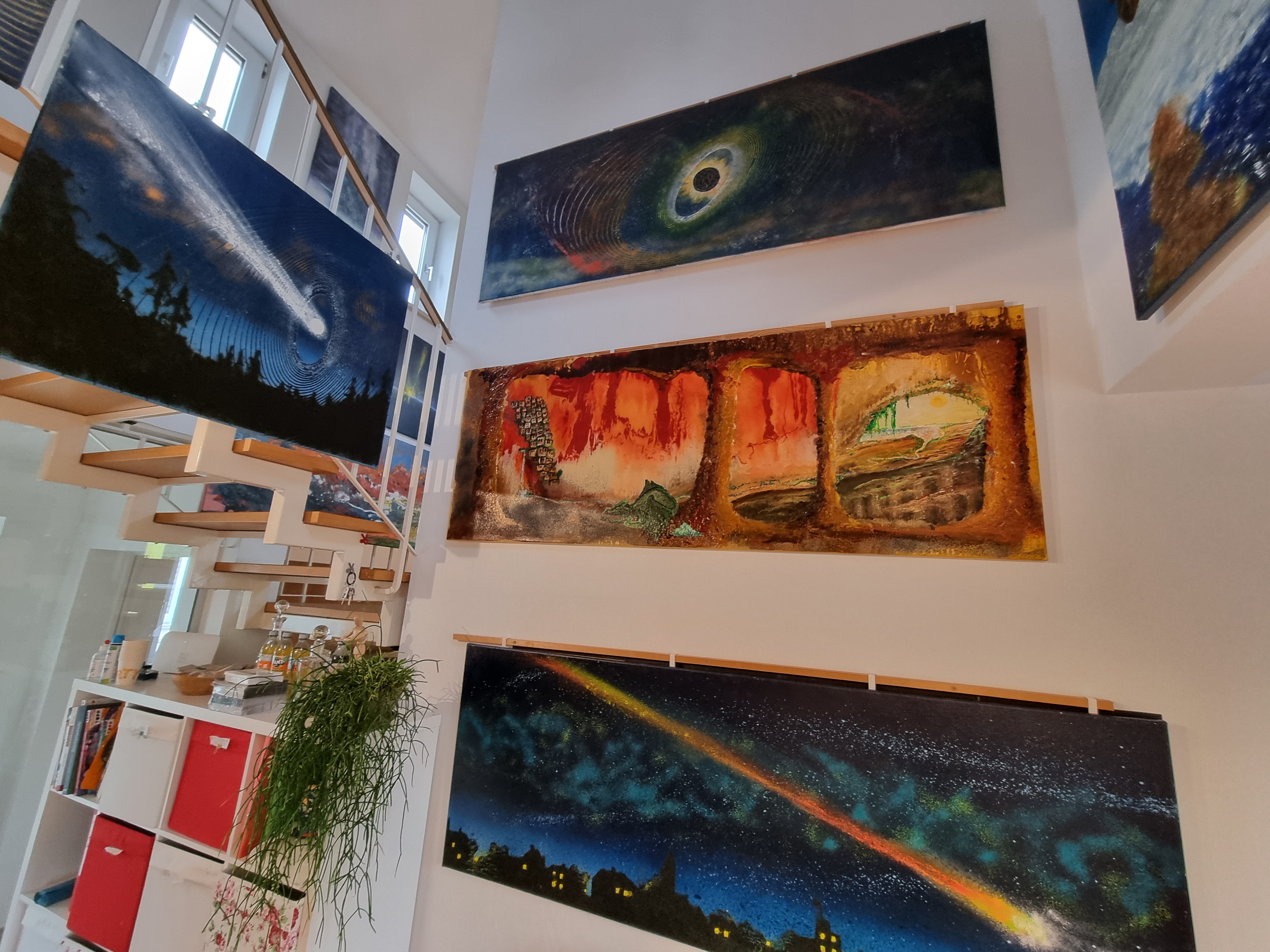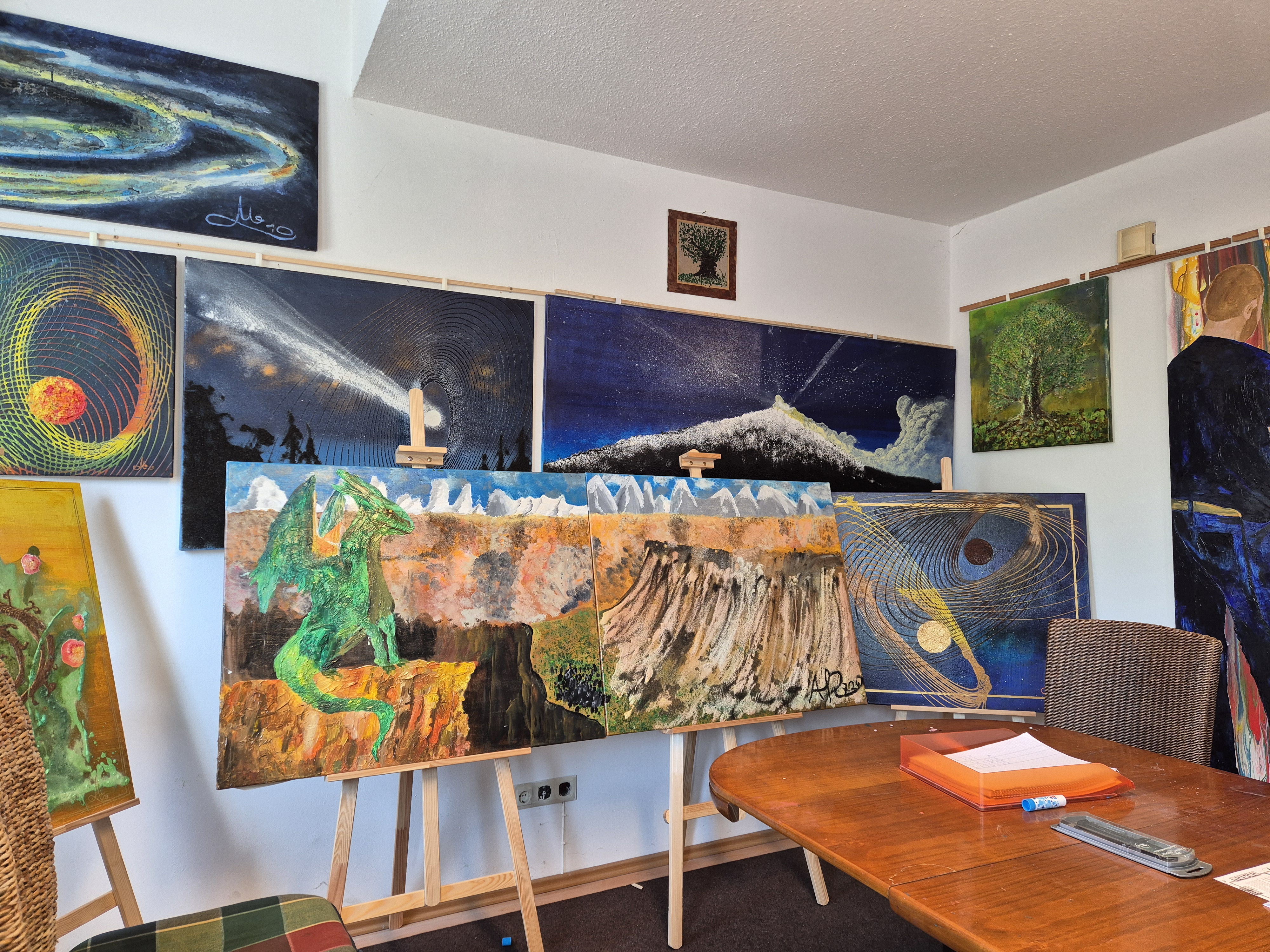Nun ist der Platz in der Malschule für die Bilder etwas eng geworden, und wir müssen leider einige davon in die Freiheit entlassen.