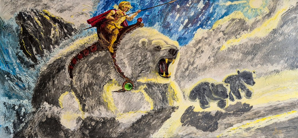 Battle Bear with Cubs, 210/100 cm, Spachtel Technik (2025), 6.265 €