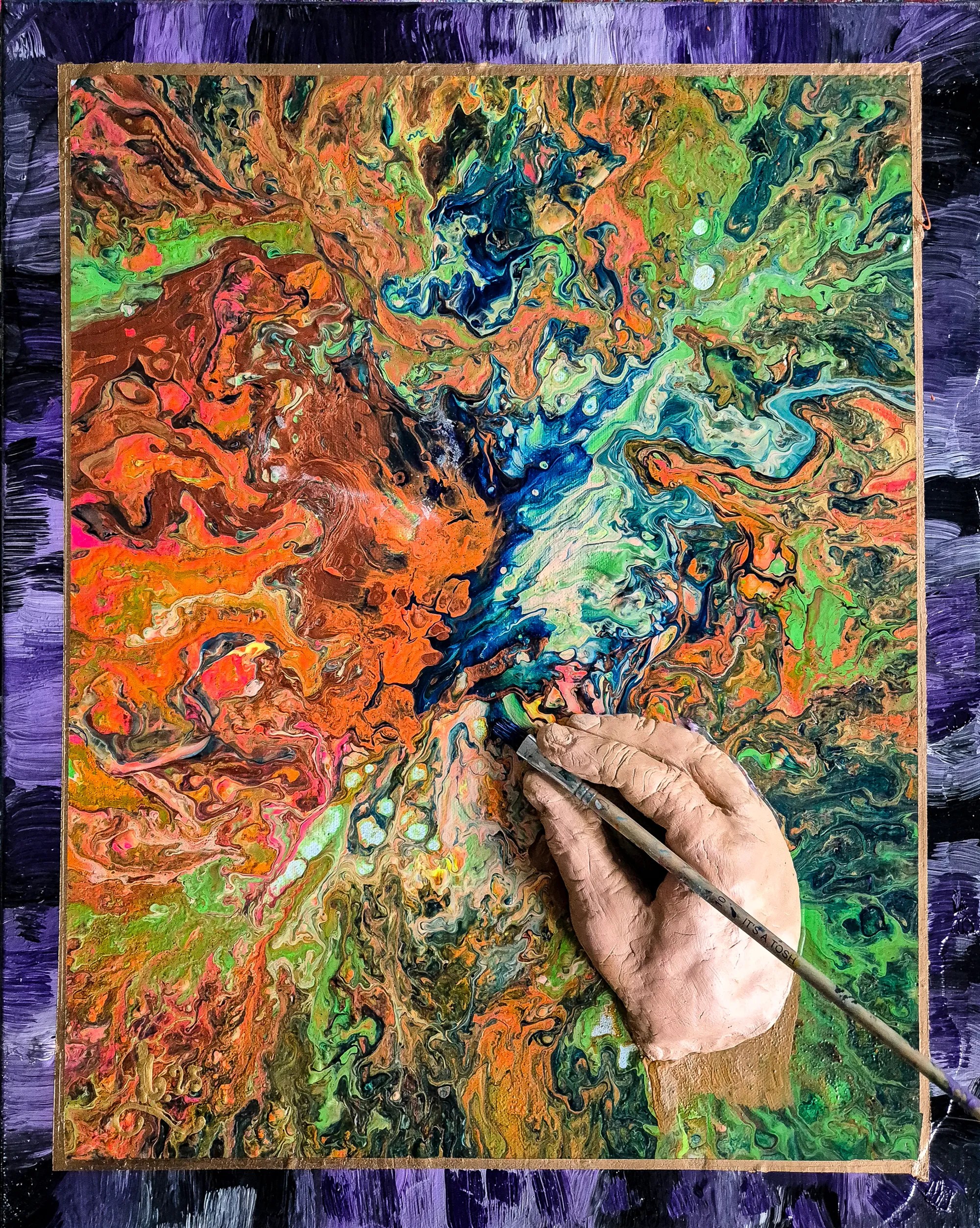 Diese Technik ist bisher einzigartig und wurde bisher noch nirgends angewandt. Meine Schüler wissen inzwischen, was Viskosität bedeutet, wie das Zaubermittel für die Bindung zusammengestellt werden und wie die Farbkomposition funktioniert.